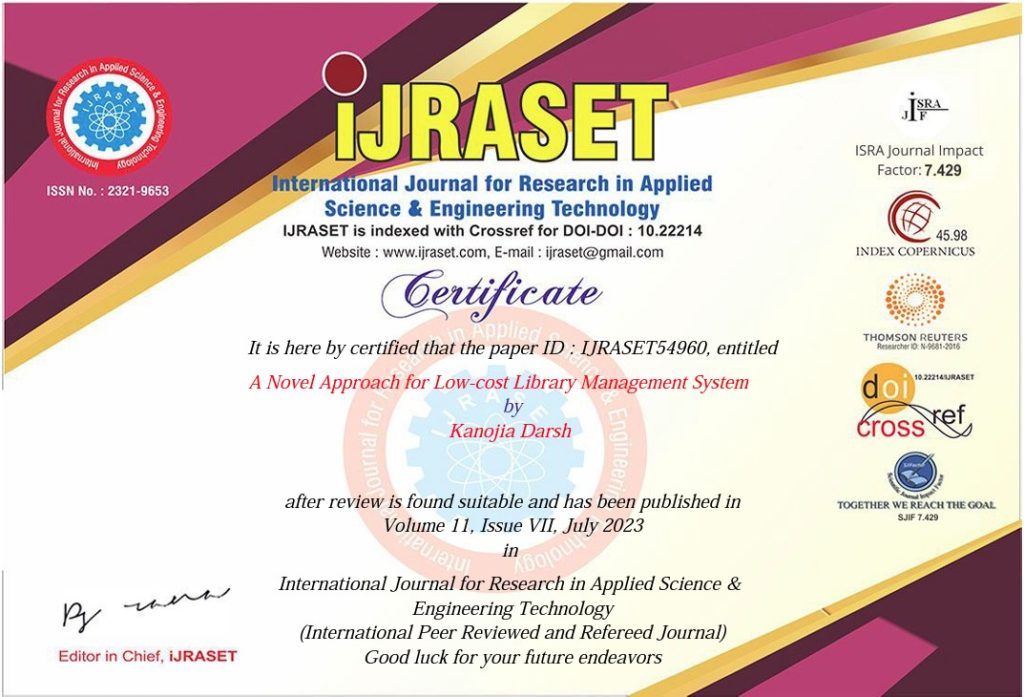 વલસાડના અબ્રામા ખાતે રહેતા અને ગાંધીનગરની કર્ણાવટી યુનિવર્સિટીમાં બી.ટેક.નો અભ્યાસ કરતા વિદ્યાર્થી દર્શ શ્રીકાંત કનોજીયા અને ટીમ દ્વારા ‘‘લો કોસ્ટ લાઈબ્રેરી મેનેજમેન્ટ’’ વિષય પર તૈયાર કરાયેલુ રીસર્ચ પેપર આંતરરાષ્ટ્રીય સ્તર પર પ્રકાશિત થયુ છે. જે કામગીરીને યુનિવર્સિટી દ્વારા બિરદાવી અભિનંદન પાઠવ્યા હતા. વલસાડના વિદ્યાર્થી દર્શ કનોજીયા અને ટીમના સાથી સભ્યો હાર્દિક ચૌહાણ, સત્યમ શિવમ, દેવેશ ખૈતાન અને અમાન મલેકે માનીવેલ કંડાસમ્ય અને રાજુ શાન્મુગમના માર્ગદર્શન હેઠળ આ કાર્ય સફળતાપૂર્વક પાર પાડ્યું હતું. નજીવા ખર્ચે લાઈબ્રેરી મેનેજમેન્ટ સિસ્ટમ વિષય પર નવતર અભિગમ અપનાવી તેઓએ કરેલુ રીસર્ચ વર્ક ઈન્ટરનેશનલ જર્નલ ફોર રીસર્ચ ઈન એપ્લાઈડ સાયન્સ એન્ડ એન્જિનિયરિંગ ટેક્નોલોજીના જુલાઈ ૨૦૨૩ના અંકમાં પ્રકાશિત થયુ છે. જે બાબતને કર્ણાવતી યુનિવર્સિટીના અધ્યાપકોએ એક મોટી સિદ્ધિ ગણાવી તમામ વિદ્યાર્થીઓને અભિનંદન પાઠવી તેમના કાર્યને બિરદાવવામાં આવ્યું હતું. આ રીસર્ચ વર્કને ગુગલ દ્વારા પણ પ્રકાશિત કરવામાં આવ્યું છે. આ મહત્વપૂર્ણ કાર્યમાં વલસાડના વિદ્યાર્થીનું યોગદાન નોંધનીય રહ્યું હતું.