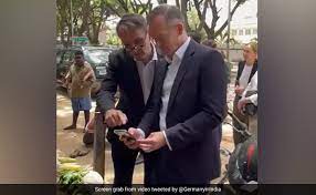 જર્મનીના યુનિયન ડિજિટલ અને ટ્રાન્સપોર્ટ મિનિસ્ટર વોલ્કર વિસિંગે યુપીઆઈનો ઉપયોગ કરીને પેમેન્ટની સરળતાનો અનુભવ કર્યો અને તેઓ તેના ફેન બની ગયા હતા. વોલ્કર વિસિંગે ૧૯ ઓગસ્ટે બેંગલુરુમાં જી૨૦ ડિજિટલ મંત્રીઓની બેઠકમાં હાજરી આપી હતી અને ગઈકાલે બેંગલુરુની શેરીઓમાં ફરવા નીકળ્યા હતા. અહીં તેમણે શાકમાર્કેટમાંથી શાકભાજી ખરીદ્યા અને તેના માટે યુપીઆઈદ્વારા ચૂકવણી કરી હતી. જર્મનીના મંત્રીનો શાકભાજી ખરીદતો વીડિયો સોશ્યલ મીડિયા પર ખુબ વાયરલ થઈ રહ્યો છે.